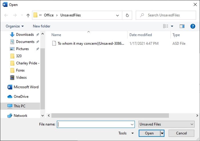 How to recover asd file. To find these files, follow these steps: Open word and click on file > open. Scroll until you find the doc format it and choose that.